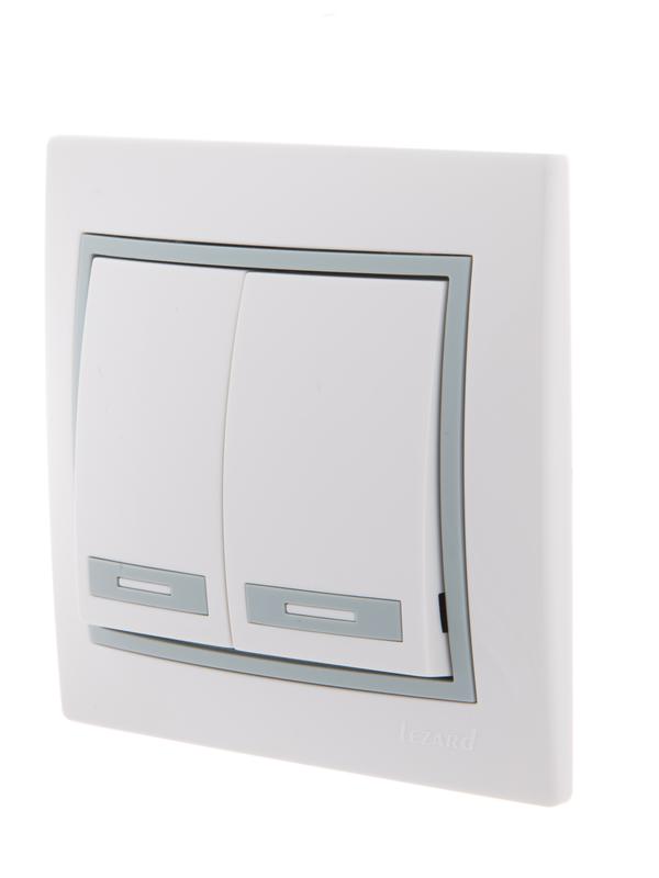 Выключатель 2-кл. СП Mira 10А IP20 с сер. вставкой бел. LEZARD 701-0215-101 фото в каталоге от BTSprom.by