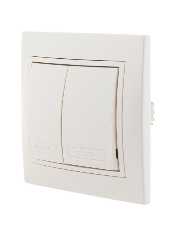 Выключатель 2-кл. СП Mira 10А IP20 со вставкой жемчуж./бел. перламутр. LEZARD 701-3030-101 фото в каталоге от BTSprom.by