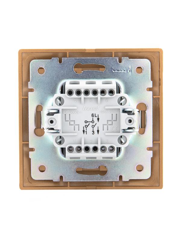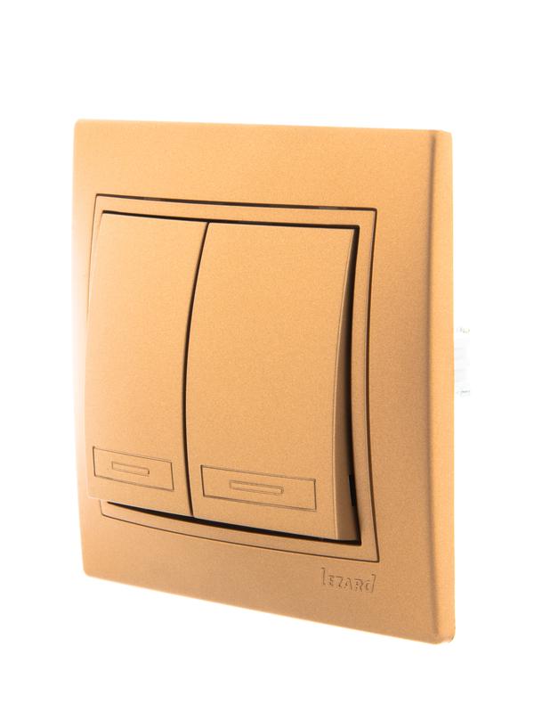 Выключатель 2-кл. СП Mira 10А IP20 со вставкой зол. метал. LEZARD 701-1313-101 фото в каталоге от BTSprom.by