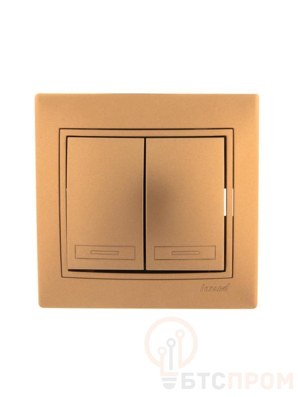 выключатель 2-кл. сп mira 10а ip20 с подсветкой со вставкой зол. метал. lezard 701-1313-112 от BTSprom.by