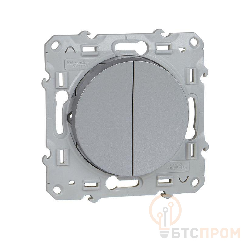 Выключатель двухклавишный Schneider Electric ODACE (цвет алюминий) с безвинтовыми зажимами предназначен для сетей до 250 В на ток до 10 А. - Подсветка осуществляется с помощью светодиодов S52R290/291. - Светодиод не входит в комплект.