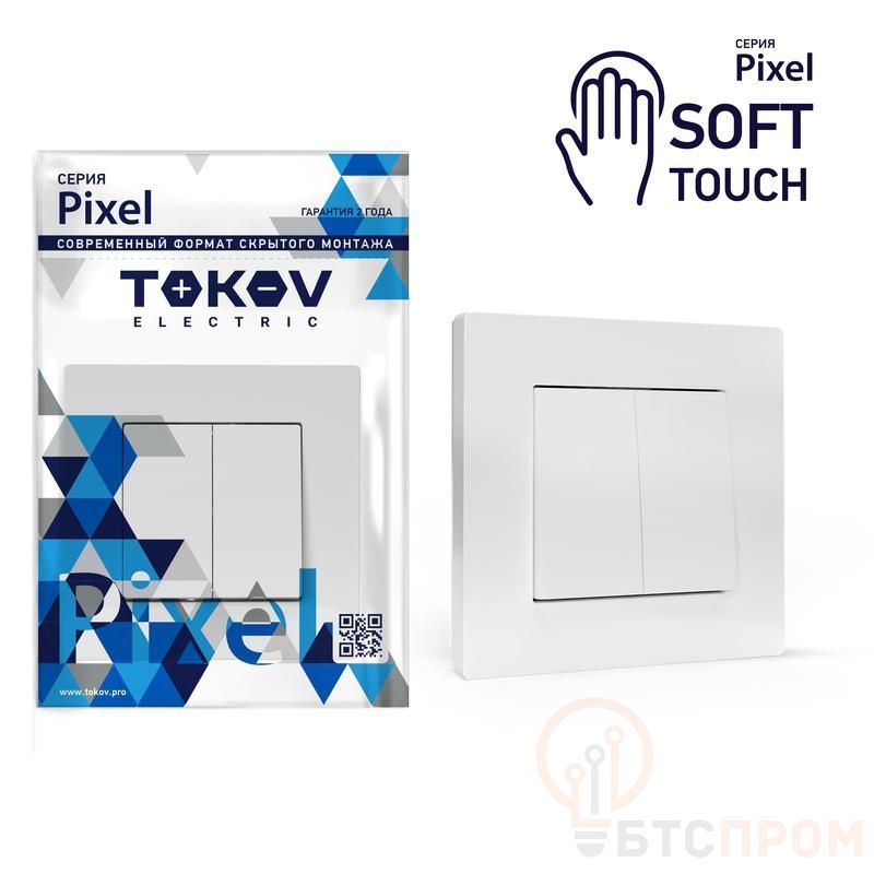 –Выключатель 2-кл. СП Pixel 10А IP20 в сборе айс TOKOV ELECTRIC TKE-PX-V2F-C34