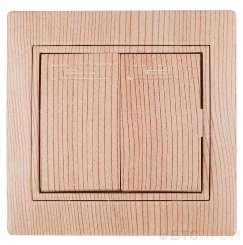 Выключатель 2-клавишный серии Intro Plano скрытой установки цвет сосна 1-104-11. Номинальные характеристики 10А 250В . Выключатель выполнен из качественного негорючего термопласта, укомплектован одноместной рамкой, оснащён винтовыми клеммами. Вертикальное расположение клемм обеспечивает удобный и надёжный монтаж. Клеммы с двумя отверстиями позволяют соединять соседние выключатели шлейфом. Установка в подрозетник производится как на монтажные лапки, так и на винты. Для установки 2-х и более выключателей в несколько подрозетников в ряд дополнительно используются многоместные рамки: 2-х постовая - 1-502-хх, 3-х постовая 1-503-хх, 4-х постовая - 1-504-хх (где хх - цветовой код: 01 - белый, 02 - слоновая кость, 03 - алюминий, 04 - шампань, 05 - антрацит, 10 - венге, 11 - сосна). Другие устройства серии вы можете найти введя в поиск Intro Plano.