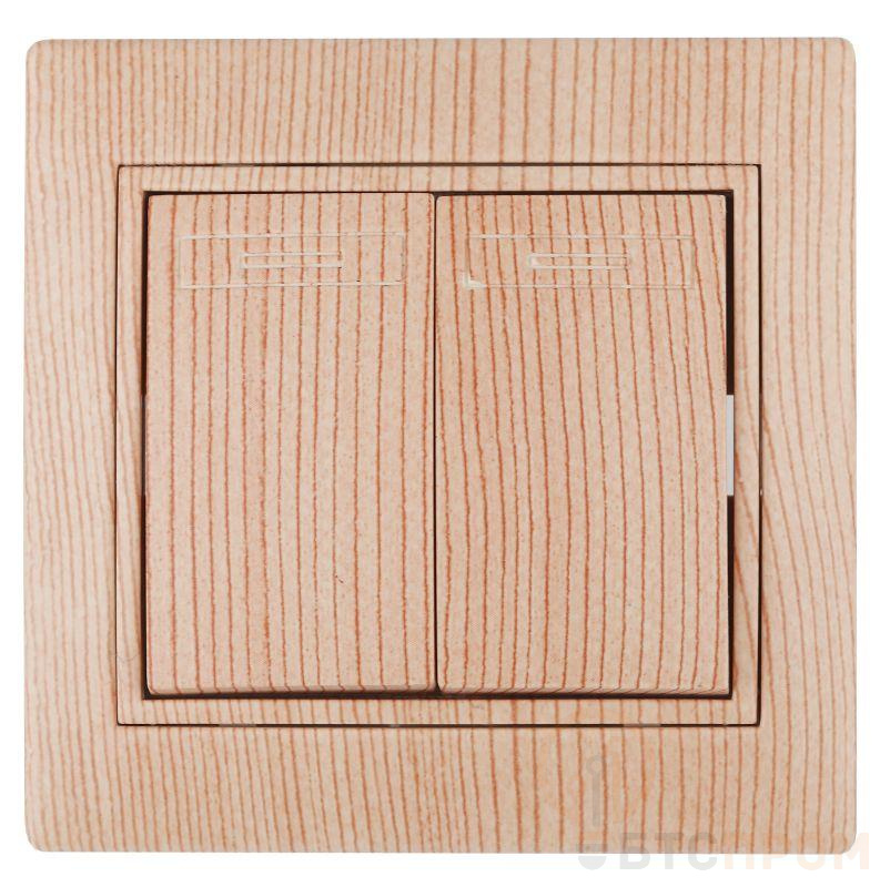 Выключатель Intro Plano 1-104-11 двухклавишный, 10А-250В, IP20, СУ, Plano, сосна