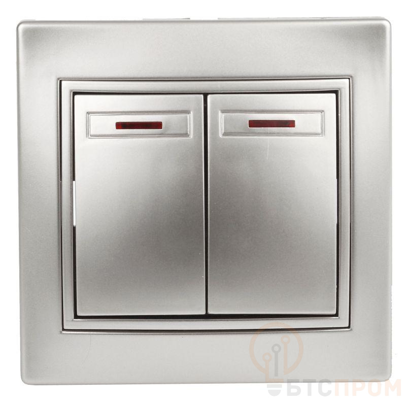 Выключатель двойной с подсветкой, 10А-250В, IP20, СУ, алюминий Intro Plano 1-105-03