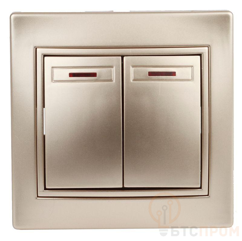 Выключатель двойной с подсветкой, 10А-250В, IP20, СУ, шампань Intro Plano 1-105-04