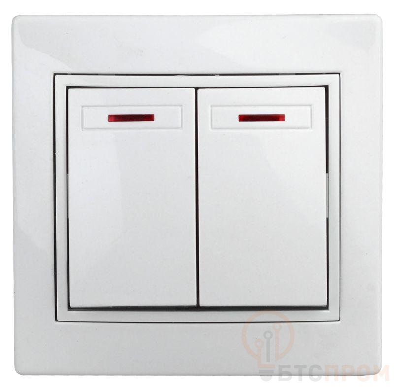 Выключатель двойной с подсветкой, 10А-250В, СУ, б.л., Plano, белый