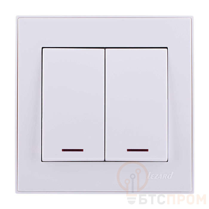 Выключатель 2-кл. СП Rain 10А IP20 с подсветкой бел. LEZARD 703-0202-112 фото в каталоге от BTSprom.by