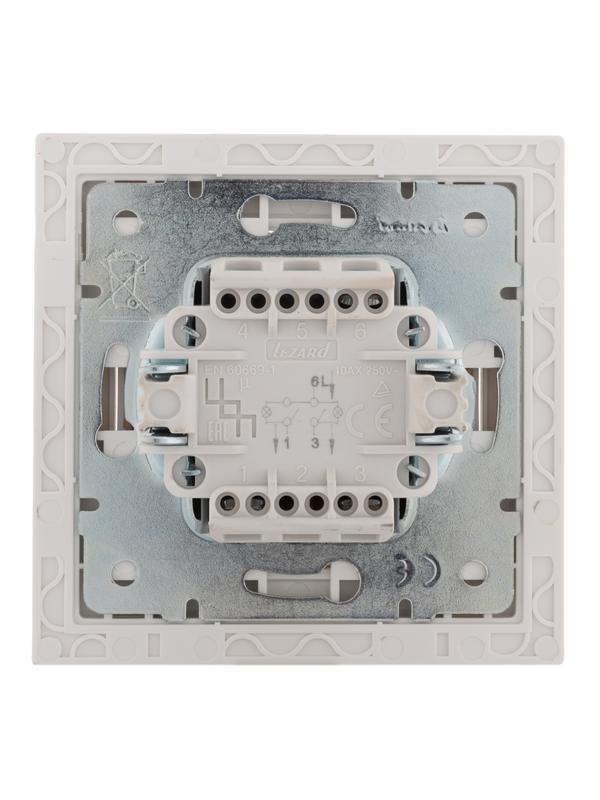 Двухклавишный выключатель Lezard серии Rain (модель 703-0225-112) — это стильное и функциональное решение для управления освещением в современных жилых и коммерческих интерьерах. Модель рассчитана на силу тока до 10А и имеет степень защиты IP20, что делает ее идеальной для установки в сухих помещениях, таких как гостиные, спальни, прихожие и офисы.