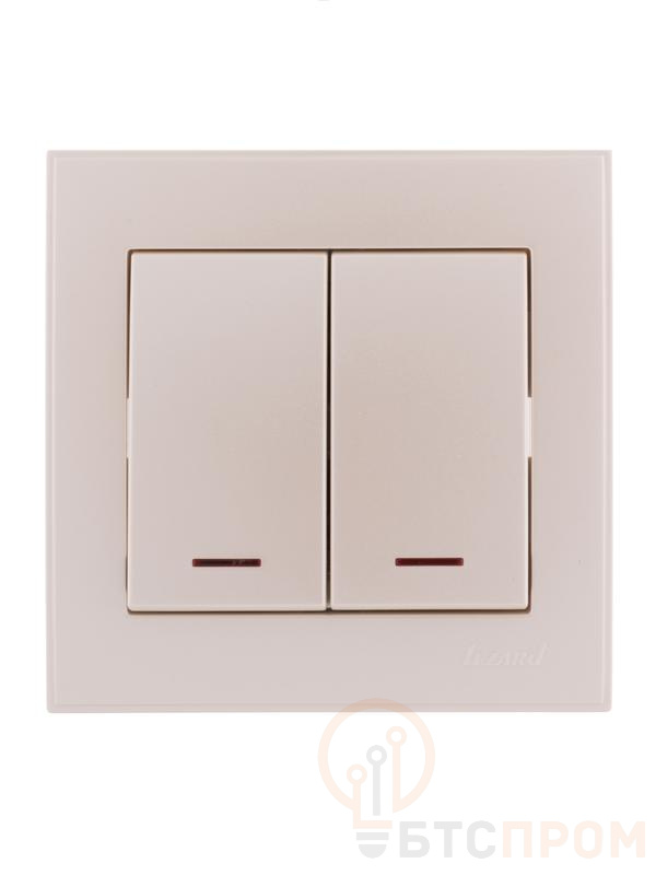 Ключевой особенностью данной модели является встроенная подсветка, которая обеспечивает удобное ориентирование в темноте и легкое нахождение выключателя. Две независимые клавиши позволяют управлять двумя группами освещения (например, основным и декоративным светом) из одной точки, что повышает комфорт и функциональность.