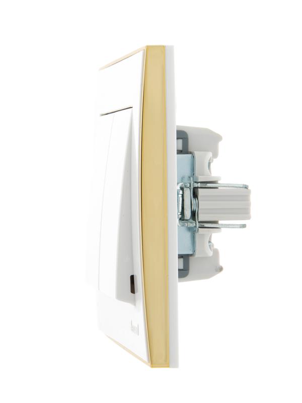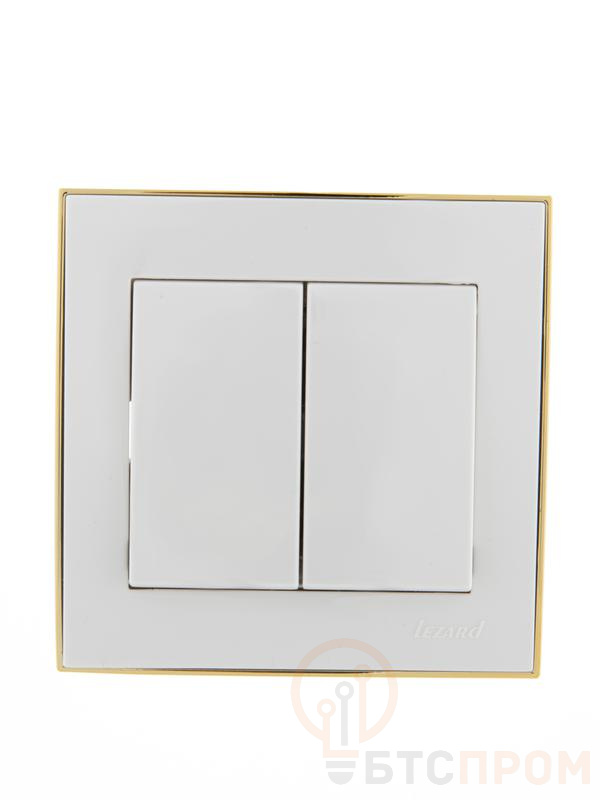 Выключатель 2-кл. СП Rain 10А IP20 с зол. боковой вставкой бел. LEZARD 703-0226-101 фото в каталоге от BTSprom.by