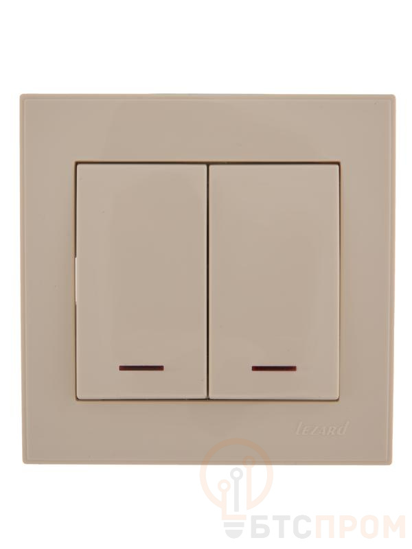 Выключатель 2-кл. СП Rain IP20 с подсветкой крем. LEZARD 703-0303-112 фото в каталоге от BTSprom.by