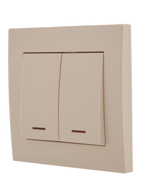 –Выключатель 2-кл. СП Rain IP20 с подсветкой крем. LEZARD 703-0303-112