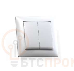 Выключатель 2-кл. СП Селена 10А С510-379 бел. Кунцево 8103 – электроустановочное устройство скрытой установки (монтируется под штукатурку). Представляет собой двухклавишный выключатель. Изготовлен из пластика, белого цвета. Поставщик: ООО "Кунцево-Электро".