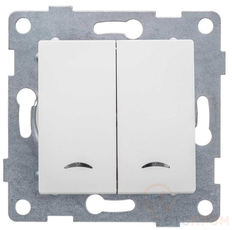 –Выключатель 2-кл. СП Ugra 10А 250В с индикацией механизм матов. бел. GUSI С11В28-041