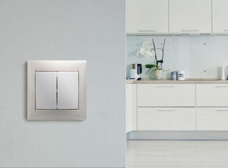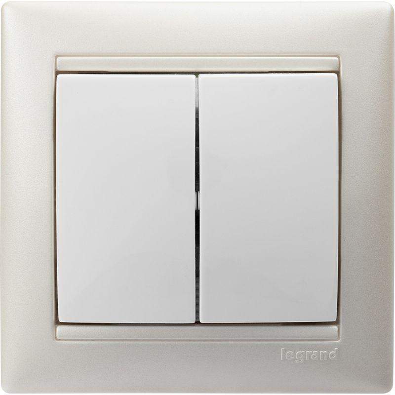 Выключатель двухклавишный VALENA для скрытого монтажа, номинальный ток 10 А, предназначен для управления двумя электрическими цепями.