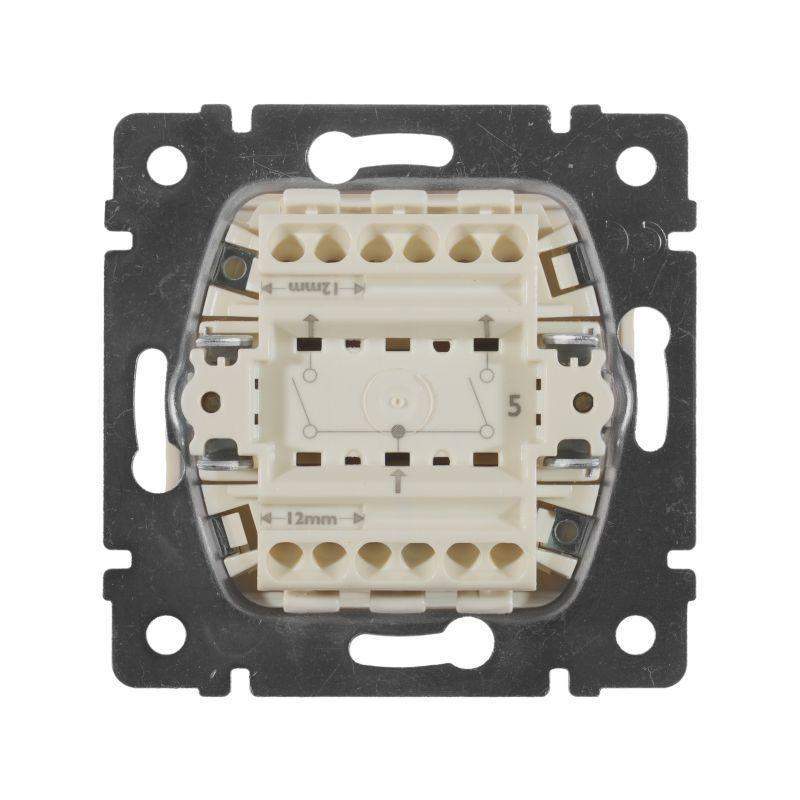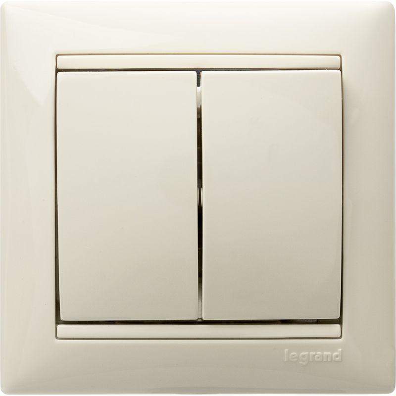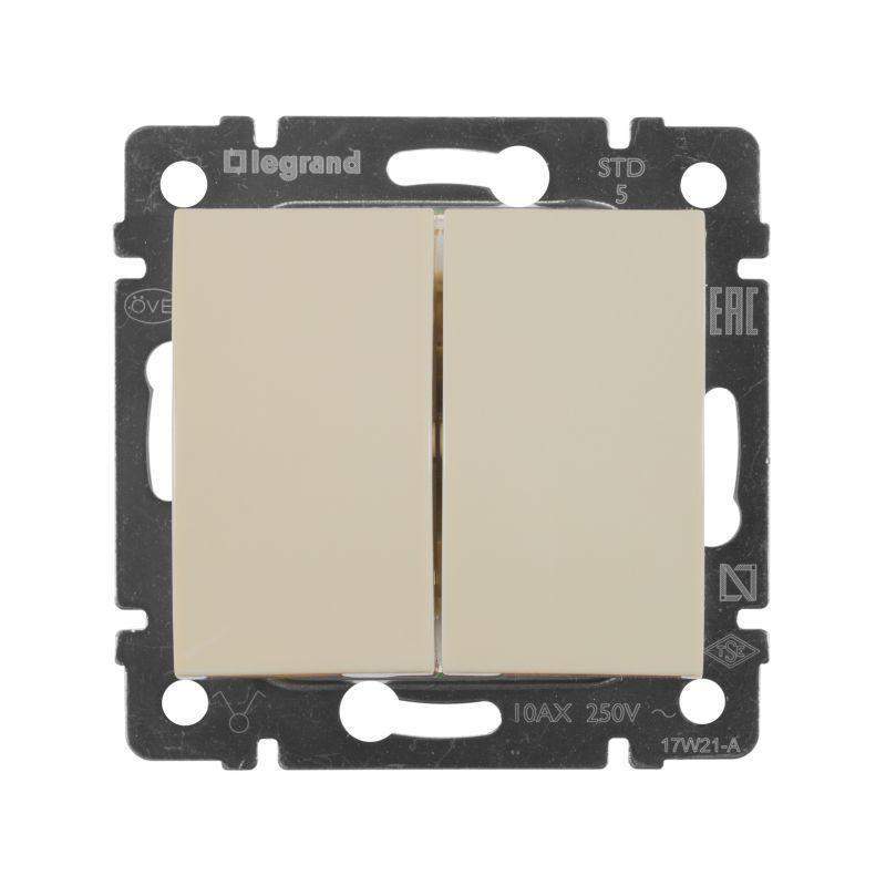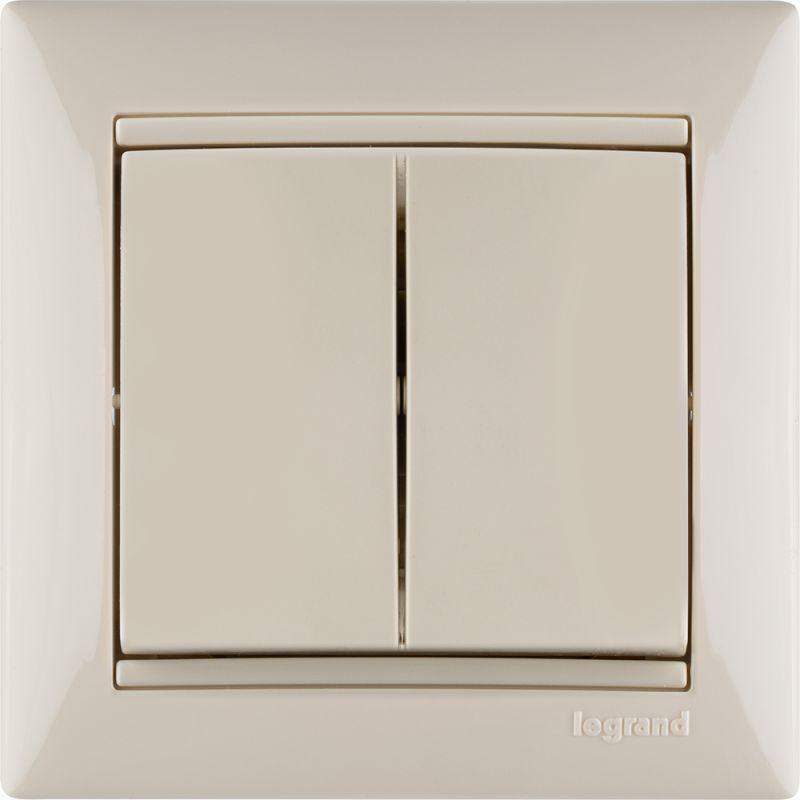 Выключатель двухклавишный VALENA для скрытого монтажа, номинальный ток 10 А, предназначен для управления двумя электрическими цепями.