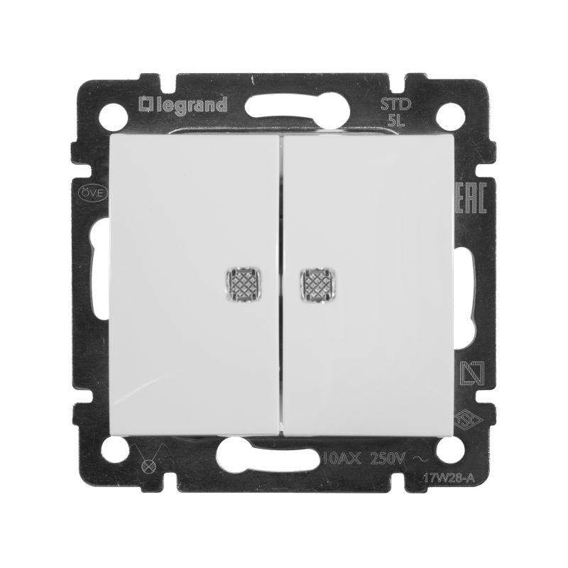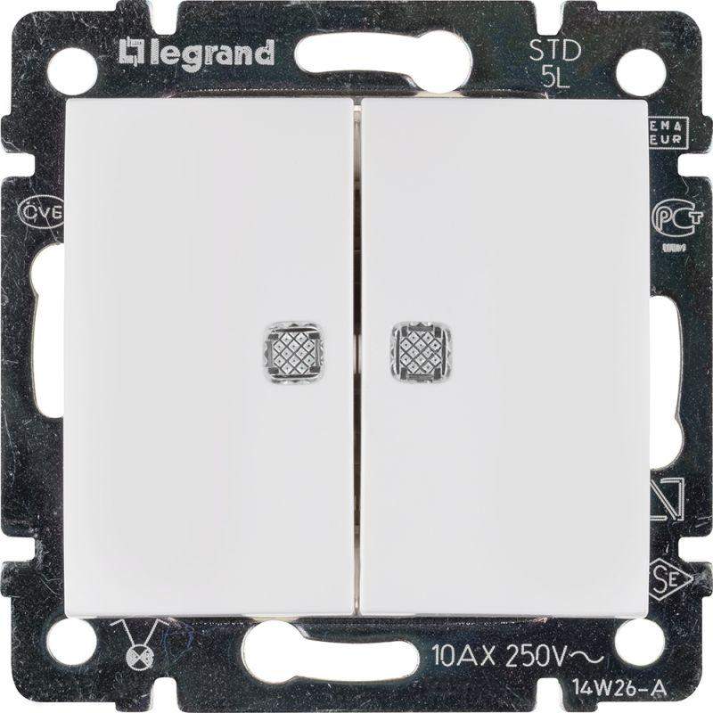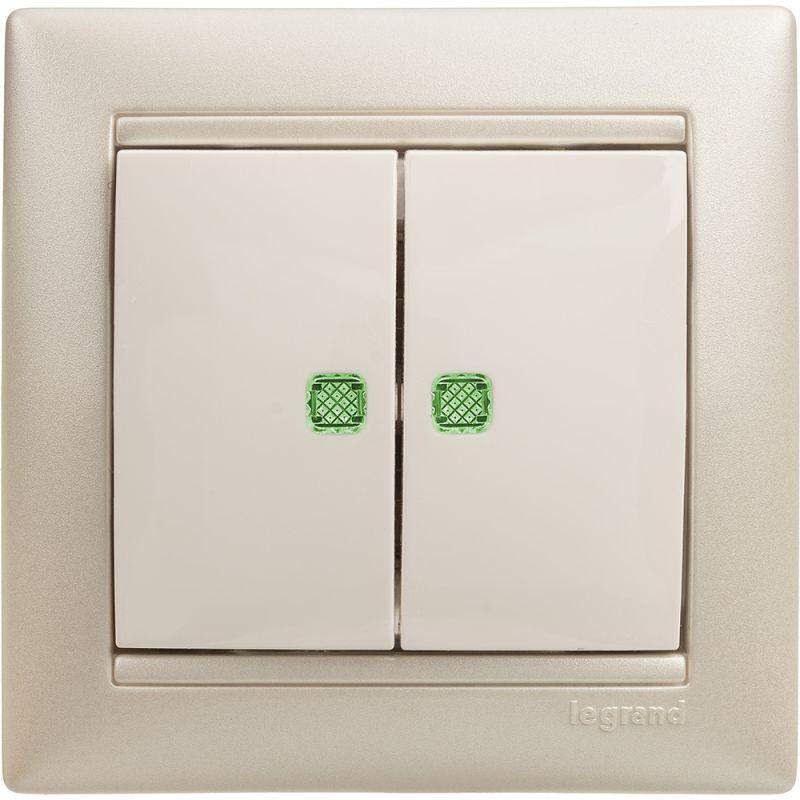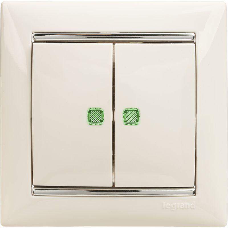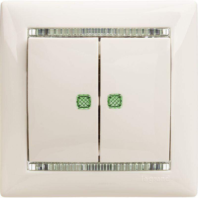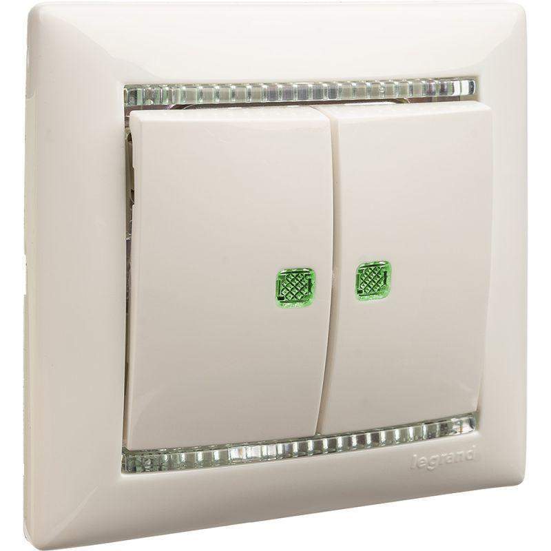 Выключатель 2-кл. СП Valena 10А IP31 250В с зел. подсветкой механизм бел. Leg 774428 фото в каталоге от BTSprom.by