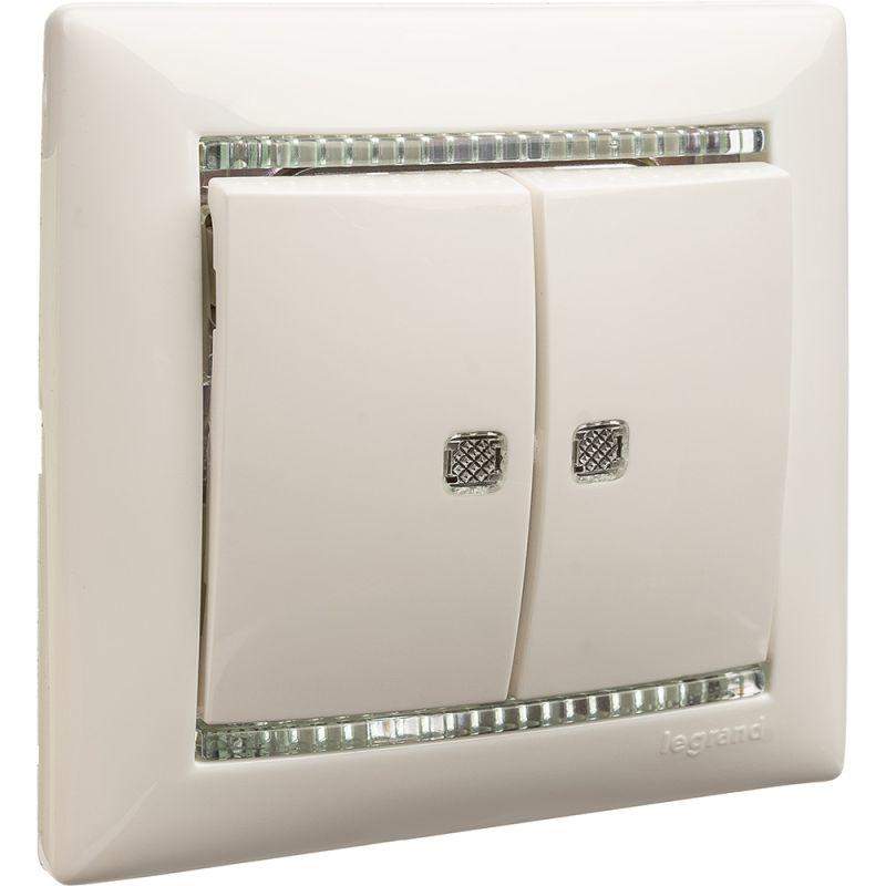 выключатель 2-кл. сп glossa 10а ip20 (сх. 5а) 10ax с подсветкой механизм бел. se gsl000153 от BTSprom.by