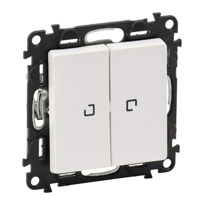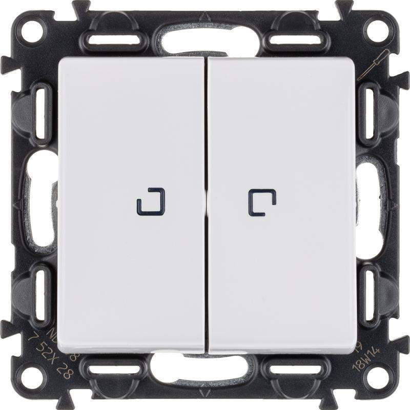Механизм выключателя 2-кл. Valena Life 10АХ 250В с подсветкой; с лицевой панелью белый Leg 752428 – электроустановочный механизм. Представляет собой двуклавишный выключатель, из пластика, с лицевой панелью белого цвета, со световой индикацией, скрытой установки, монтируемый под штукатурку.