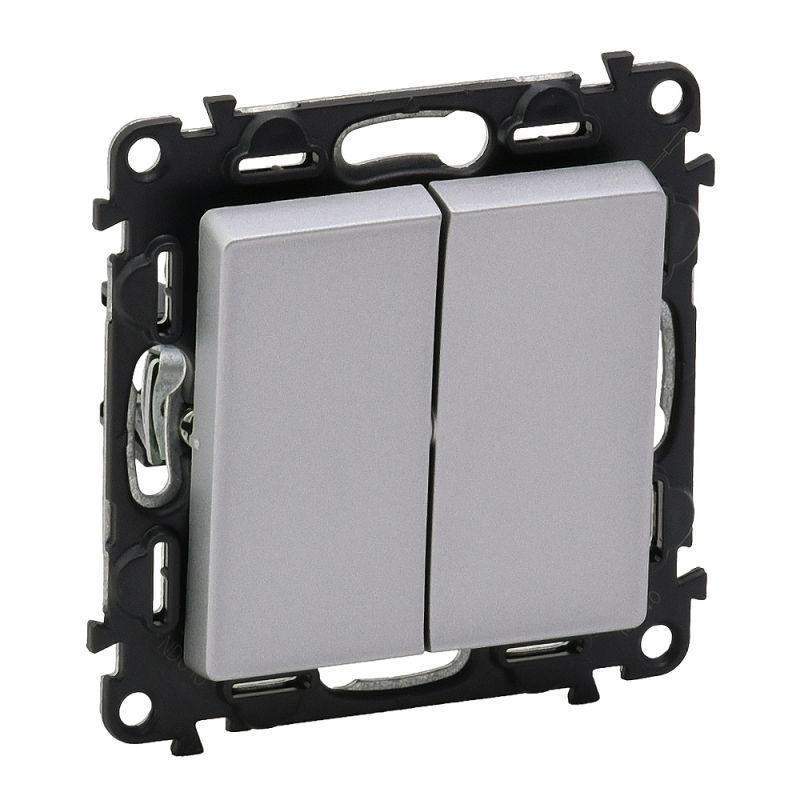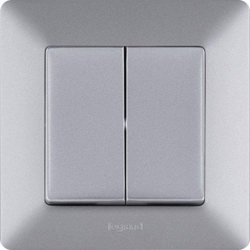 Выключатель 2-кл. СП Valena Life 10А IP20 250В с лицев. панелью безвинтов. зажимы механизм алюм. Leg 752605