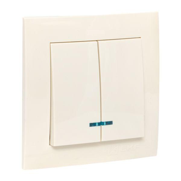 –Выключатель 2-кл. СП Валенсия 10А IP20 с индикатором крем. PROxima EKF EWV10-123-20