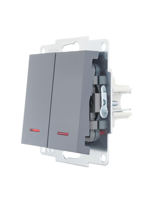Двухклавишный выключатель СП Vesna от бренда LEZARD (артикул 742-3488-112) — это современное и надежное решение для управления освещением в вашем доме или офисе. Модель выполнена в строгом цвете «графит», который гармонично впишется в интерьеры, оформленные в сдержанных и стильных тонах.