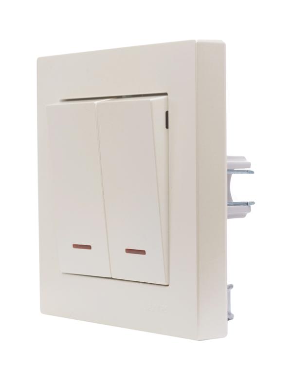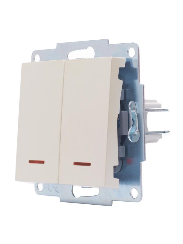 Выключатель 2-кл. СП Vesna с индикацией механизм жемчуж./бел. перламутр. LEZARD 742-3088-112 фото в каталоге от BTSprom.by