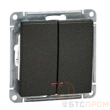 Механизм W59 (цвет чёрный бархат) выключателя 2-клавишного с подсветкой подходит для сетей 250 В, на ток до 10 А. - Двухклавишный выключатель позволяет управлять двумя источниками света с одной точки. - Благодаря подсветке изделие легко найти в темноте. - Серебряные контактные группы выключателей обеспечивают надёжный электрический контакт и пожаробезопасность. - Корпус изделия выполнен из высококачественного ABS-пластика.