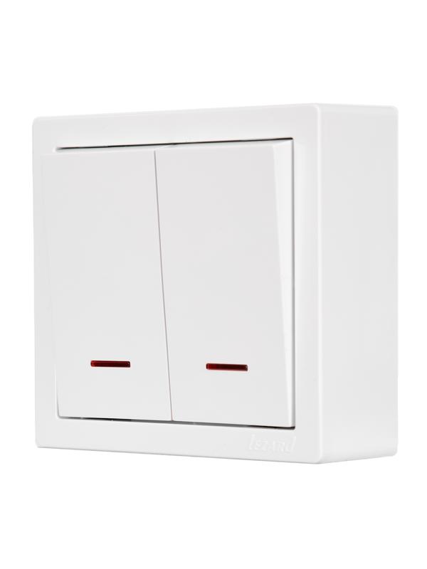 Выключатель 2-клав. LETO с инд. бел. LEZARD 752-0200-112 фото в каталоге от BTSprom.by