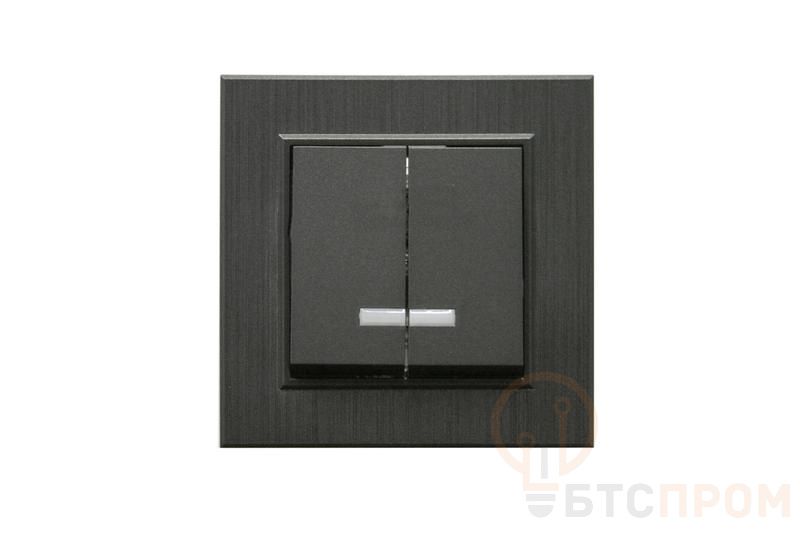 Выключатель 2-клав. с подсветкой Karea LINE STAR дым. металлик Makel 86050023 фото в каталоге от BTSprom.by