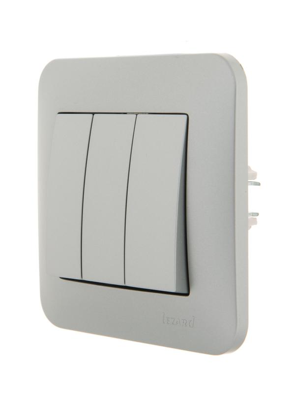 Выключатель 3-кл. 1п СП Karina 10А IP20 механизм матов. серебр. LEZARD 707-4388-109 фото в каталоге от BTSprom.by
