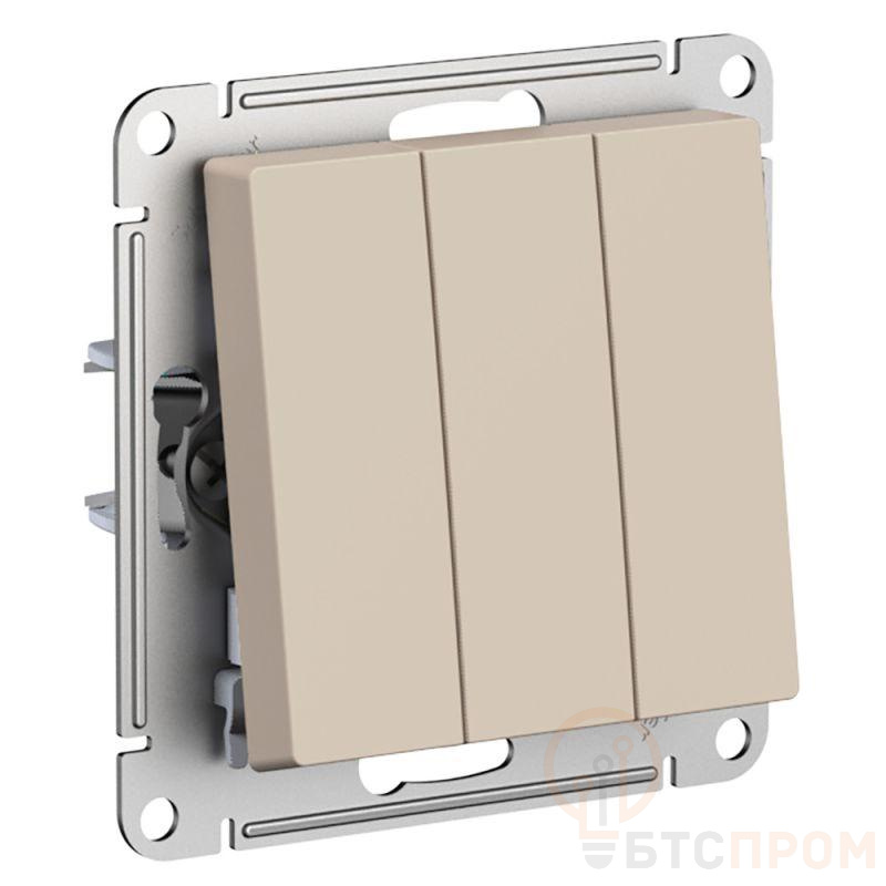 Механизм Systeme Electric (ранее Schneider Electric) серии AtlasDesign в цвете ПЕСОЧНЫЙ выключателя 3-клавишного подходит для сетей 250 В, на ток 10 А. - Трёхклавишный выключатель позволяет управлять тремя источниками света из одной точки. - Лицевые детали из качественного ABS-пластика, устойчивого к царапинам и УФ-излучению. - Усиленные прямые монтажные лапки для лучшей фиксации механизма в монтажной коробке.