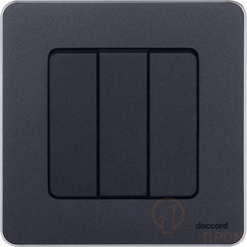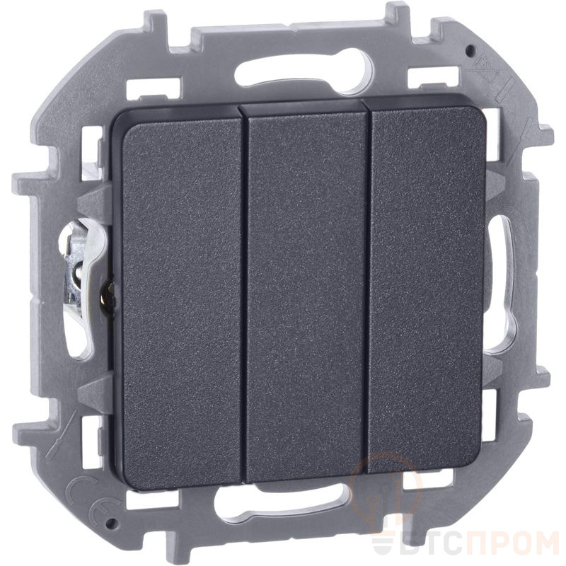 Выключатель трёхклавишный скрытого монтажа Inspiria, цвет "Антрацит", номинальный ток 10АХ, напряжение ~250В, винтовые зажимы. Устанавливается в жилых и общественных помещениях для управления приборами освещения, вентиляции и т.д. Предназначен для независимой коммутации трёх нагрузок с одного места. Подходит для управления многорожковыми люстрами и осветительными приборами с большим количеством ламп.