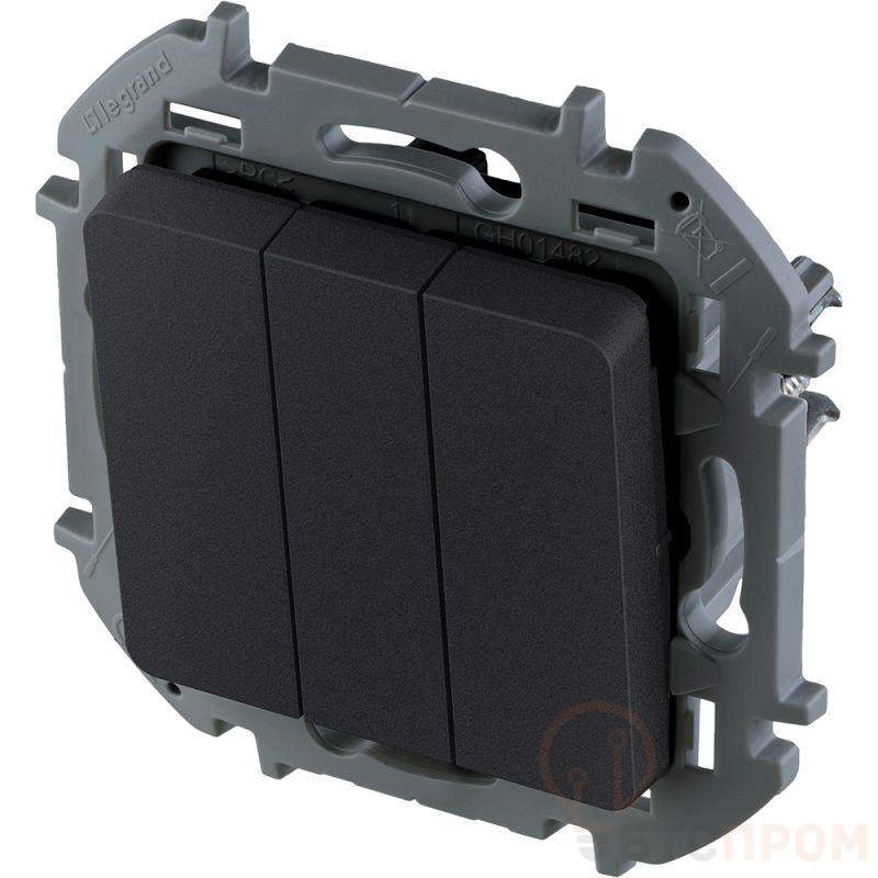 Выключатель трехклавишный Legrand Inspiria для скрытого монтажа, цвет "Антрацит", увеличенный номинальный ток 20 А, напряжение ~250В. Предназначен для установки в электрических сетях жилых и общественных зданий и используется для управления приборами освещения, вентиляции и т.д. Используется для независимой коммутации трех нагрузок с одного места, подходит для управления многорожковыми люстрами и осветительными приборами с большим количеством ламп. Особенности изделия: - Материал клавиш - глянцевый пластик АБС, стоек к выгоранию и загрязнениям. - Для подсоединения проводов используются винтовые зажимы. - Все токоведущие части выключателя имеют защиту от случайного прикосновения. - Улучшенная эргономика снижает вероятность искрения при коммутации светодиодов. - Ход клавиши короткий, не громкий.