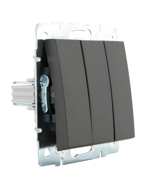 Выключатель 3-кл. Rain механизм матов. черн. графит LEZARD 703-4188-109 фото в каталоге от BTSprom.by