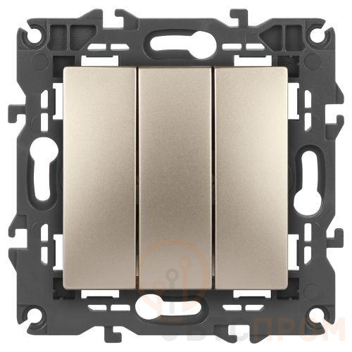 Выключатель 3-клавишный Эра Elegance шампань 14-1107-04. Рамки приобретаются отдельно.