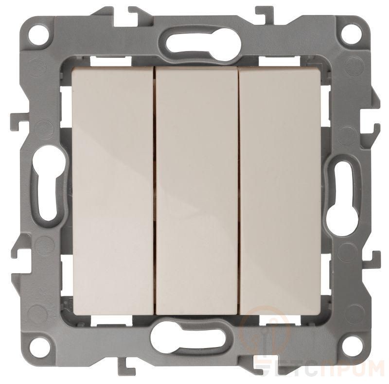 Выключатель 3-клавишный серии Эра 12 скрытой установки механизм цвет слоновая кость 12-1107-02. Номинальные характеристики 10А 250В . Сделан из поликарбоната, оснащён винтовыми уникальными клеммами ЭКСПЕРТ для надёжной фиксации жил кабеля в механиме. Парные клеммы обеспечивают соединение шлейфом. Монтаж в подрозетник производится и на лапки, и на винты. Рамки приобретаются отдельно. Рамки Эра 12: 1 пост 12-5001-хх, 2 поста 12-5002-хх, 3 поста 12-5003-хх, 4 поста 12-5004-хх, 5 постов 12-5005-хх. Рамки Эра 12 Сатин: 1 пост 12-5101-хх, 2 поста 12-5102-хх, 3 поста 12-5103-хх, 4 поста 12-5104-хх, 5 постов - 12-5105-хх (хх - код цвета: 01-белый, 02-слоновая кость, 03-алюминий, 04-шампань, 05-антрацит, 06-чёрный, 07-ольха(белёный дуб-сатин), 08-вишня, 09-дуб, 10-венге, 11-сосна, 21-жёлтый, 22-оранжевый, 23-красный, 24-охра, 25-бордо, 26-лайм, 27-зелёный, 28-голубой, 29-синий).