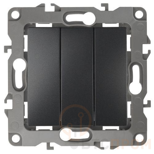 Выключатель 3-клавишный серии Эра 12 скрытой установки механизм цвет антрацит 12-1107-05. Номинальные характеристики 10А 250В . Сделан из поликарбоната, оснащён винтовыми уникальными клеммами ЭКСПЕРТ для надёжной фиксации жил кабеля в механиме. Парные клеммы обеспечивают соединение шлейфом. Монтаж в подрозетник производится и на лапки, и на винты. Рамки приобретаются отдельно. Рамки Эра 12: 1 пост 12-5001-хх, 2 поста 12-5002-хх, 3 поста 12-5003-хх, 4 поста 12-5004-хх, 5 постов 12-5005-хх. Рамки Эра 12 Сатин: 1 пост 12-5101-хх, 2 поста 12-5102-хх, 3 поста 12-5103-хх, 4 поста 12-5104-хх, 5 постов - 12-5105-хх (хх - код цвета: 01-белый, 02-слоновая кость, 03-алюминий, 04-шампань, 05-антрацит, 06-чёрный, 07-ольха(белёный дуб-сатин), 08-вишня, 09-дуб, 10-венге, 11-сосна, 21-жёлтый, 22-оранжевый, 23-красный, 24-охра, 25-бордо, 26-лайм, 27-зелёный, 28-голубой, 29-синий).