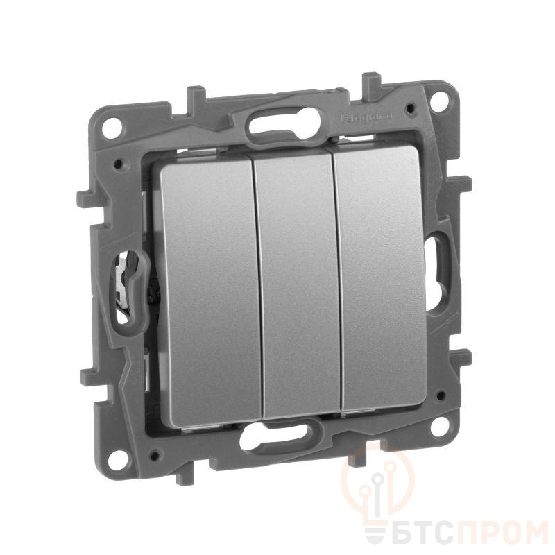 Выключатель трёхклавишный ETIKA для скрытого монтажа, номинальный ток 10 А. Предназначен для независимого управления тремя нагрузками с одного места. Подходит для управления многорожковыми люстрами и осветительными приборами с большим количеством ламп.