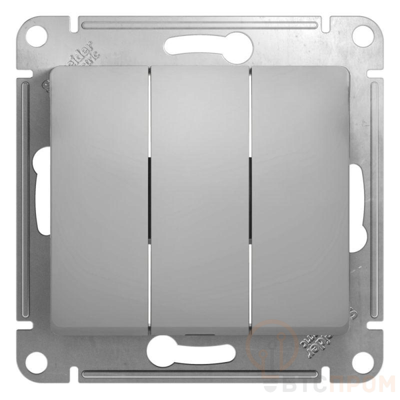 Механизм Systeme Electric (ранее Schneider Electric) серии Glossa (цвет алюминий) выключателя 3-клавишного подходит для сетей 250 В, на ток 10 А. - Трёхклавишный выключатель позволяет управлять тремя источниками света из одной точки. - Выполнен из материала PС+ASA, стойкого к УФ-излучению и появлению царапин. - Эргономичные клеммы расположены в два ряда: сверху и снизу.