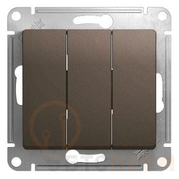 Механизм Systeme Electric (ранее Schneider Electric) серии Glossa (цвет шоколад) выключателя 3-клавишного подходит для сетей 250 В, на ток 10 А. - Трёхклавишный выключатель позволяет управлять тремя источниками света из одной точки. - Выполнен из материала PС+ASA, стойкого к УФ-излучению и появлению царапин. - Эргономичные клеммы расположены в два ряда: сверху и снизу.