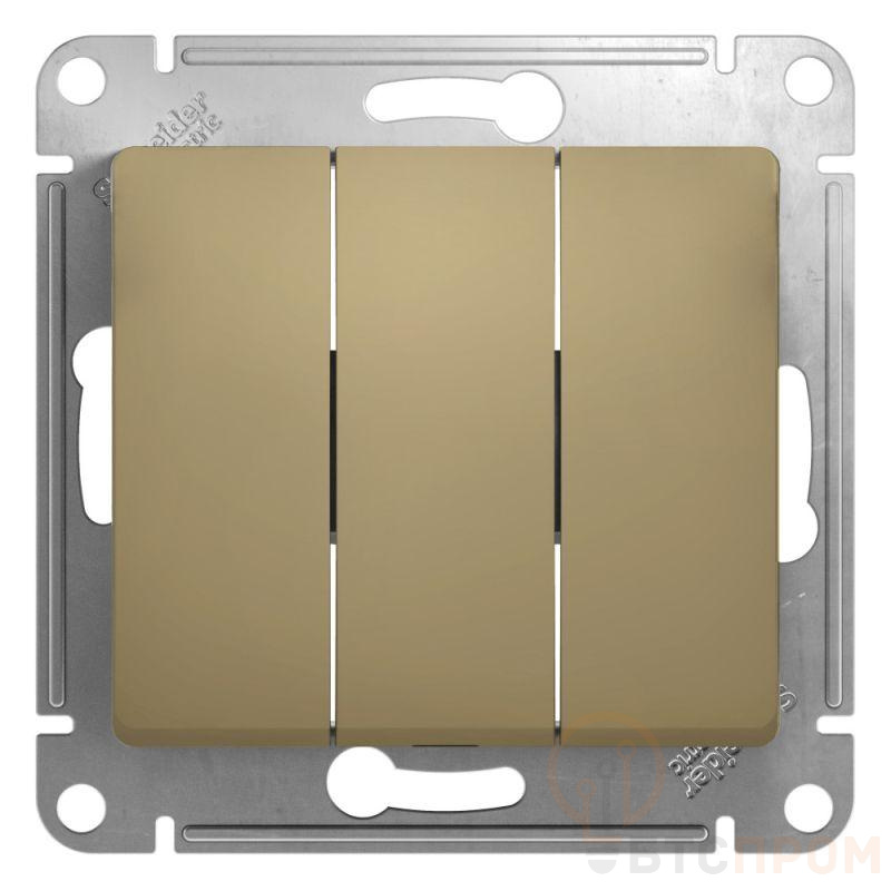 Механизм Systeme Electric (ранее Schneider Electric) серии Glossa (цвет титан) выключателя 3-клавишного подходит для сетей 250 В, на ток 10 А. - Трёхклавишный выключатель позволяет управлять тремя источниками света из одной точки. - Выполнен из материала PС+ASA, стойкого к УФ-излучению и появлению царапин. - Эргономичные клеммы расположены в два ряда: сверху и снизу.