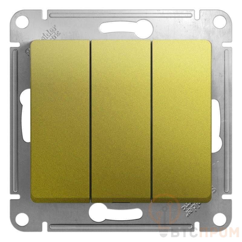 Механизм Schneider Electric Glossa (цвет фисташковый) выключателя 3-клавишного подходит для сетей 250 В, на ток 10 А. - Трёхклавишный выключатель позволяет управлять тремя источниками света из одной точки. - Выполнен из материала PС+ASA, стойкого к УФ-излучению и появлению царапин. - Эргономичные клеммы расположены в два ряда: сверху и снизу.