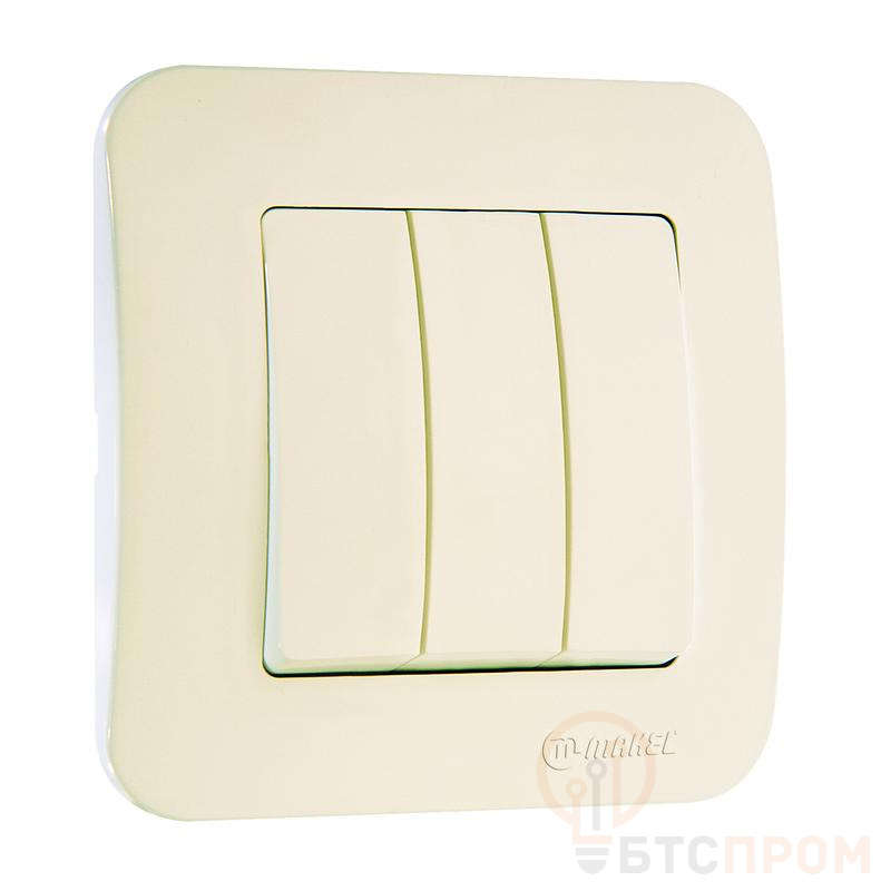 Выключатель 3-кл. СП Lillium N 10А IP20 крем. Makel 55291 фото в каталоге от BTSprom.by