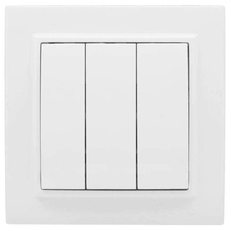 Выключатель трехклавишный EKF серии Минск станет отличным решением для квартиры и загородного дома для управления освещением. Компактный механизм упрощает монтаж изделия. Зафиксированные распорные лапки надежно фиксируют устройство в монтажной коробке.