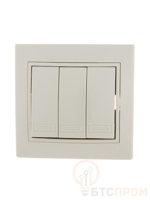 Выключатель 3-кл. СП Mira 10А IP20 со вставкой крем. LEZARD 701-0303-109 фото в каталоге от BTSprom.by