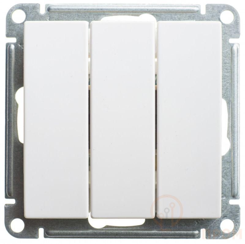 Корпус механизма выполнен в классическом белом цвете, что позволяет ему гарморично вписаться в большинство современных интерьеров. Устройство идеально подходит для установки в жилых комнатах, коридорах, офисах и других объектах, где требуется независимое управление тремя группами освещения с одной точки. Монтаж осуществляется в стандартную монтажную коробку, что обеспечивает простоту и удобство установки.