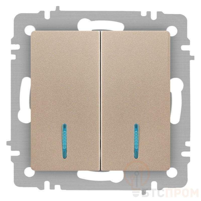 Выключатель 2-клавишный с подсветкой серии Intro Accent скрытой установки механизм цвет шампань 6-105-04. Номинальные характеристики 10А 250В. Выполнен из негорючего термопласта, оснащён винтовыми клеммами. Парные клеммы обеспечивают соединение шлейфом. Монтаж в подрозетник производится и на лапки, и на винты. Рамка приобретается отдельно. В серии представлены рамки до 5 постов: на 1 пост - 6-501-хх, на 2 поста - 6-502-хх, на 3 поста - 6-503-хх, на 6 поста - 4-504-хх, на 5 постов - 6-505-хх (где хх - цветовой код: 01 - белый, 01М - матовый белый, 02 - слоновая кость, 03 - алюминий, 04 - шампань, 05 - антрацит, 06 - перламутр, 07 - графит, 08 - бронза, 09 - титан, 10 - венге, 11 - сосна)