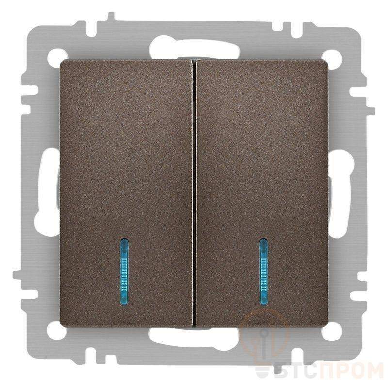Выключатель 2-клавишный с подсветкой серии Intro Accent скрытой установки механизм цвет бронза 6-105-08. Номинальные характеристики 10А 250В. Выполнен из негорючего термопласта, оснащён винтовыми клеммами. Парные клеммы обеспечивают соединение шлейфом. Монтаж в подрозетник производится и на лапки, и на винты. Рамка приобретается отдельно. В серии представлены рамки до 5 постов: на 1 пост - 6-501-хх, на 2 поста - 6-502-хх, на 3 поста - 6-503-хх, на 6 поста - 4-504-хх, на 5 постов - 6-505-хх (где хх - цветовой код: 01 - белый, 01М - матовый белый, 02 - слоновая кость, 03 - алюминий, 04 - шампань, 05 - антрацит, 06 - перламутр, 07 - графит, 08 - бронза, 09 - титан, 10 - венге, 11 - сосна)